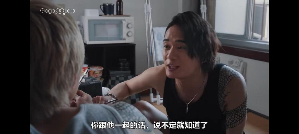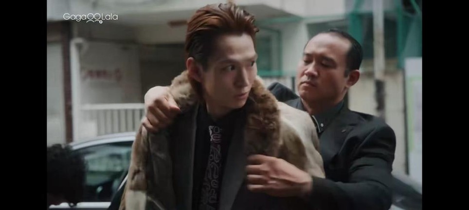 比如花心:三代目年轻的时候也是个帅哥,一生风流倜傥,阅女无数,说白一点就是非常好色,所以底下的小弟对于“攻是老大私生子”的传言没有一个人怀疑过,因为大家都觉得以他的个性是真的可以做得出来。其实我不太理解为什么剧组一定要把时间背景放在当下,因为桐井组这整个黑帮看起来就完全像是从昭和年代穿越出来的老古董,大男子主义的现象(或者用时兴的话来形容,叫登味儿)特别重,还是一直认为更“男人”的男人更受女人欢迎,所以情人越多,就表示自己越man(我好像八百辈子没用过这词了),所以【风流】更像是一种勋章,所以在三代目的葬礼上,攻给一生好色情人不断的【父亲】三代目投其所好地添了个口红印(是说你们还挺会给老人家们搞投其所好这一套的,我上一场看到“如此投其所好”的葬礼节目好像还是《靛蓝色的心情》的灵堂doi,当然更久远一点的还有全家人一起弹着尤克里里给逝者唱歌之类的),